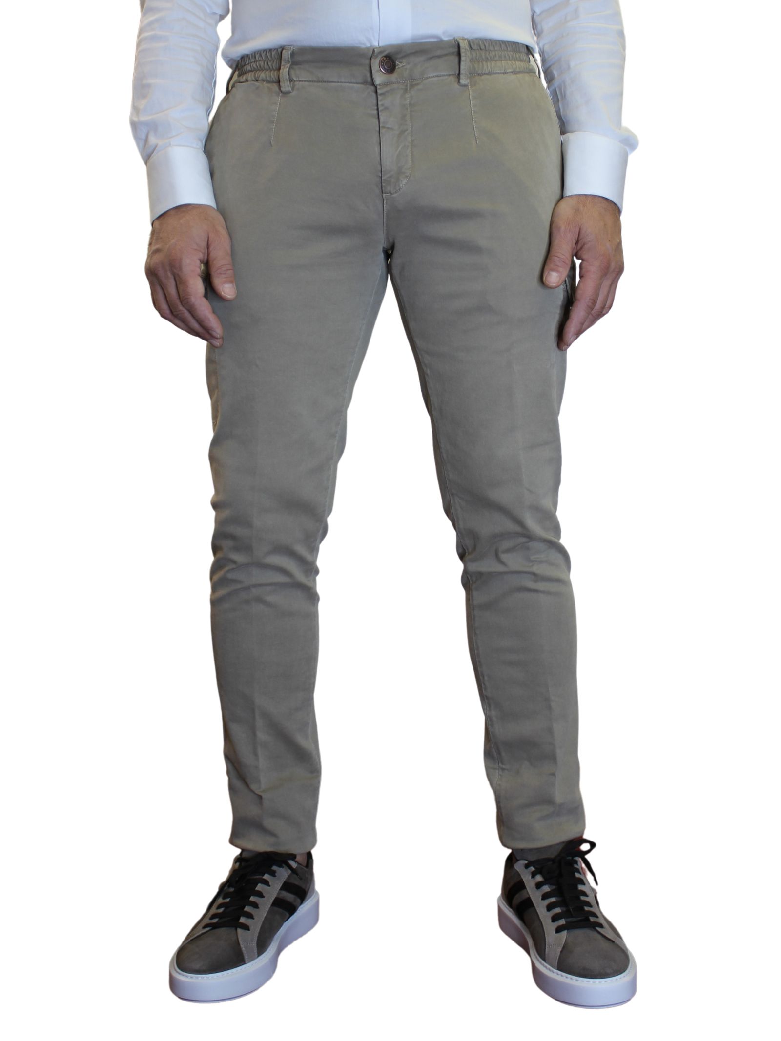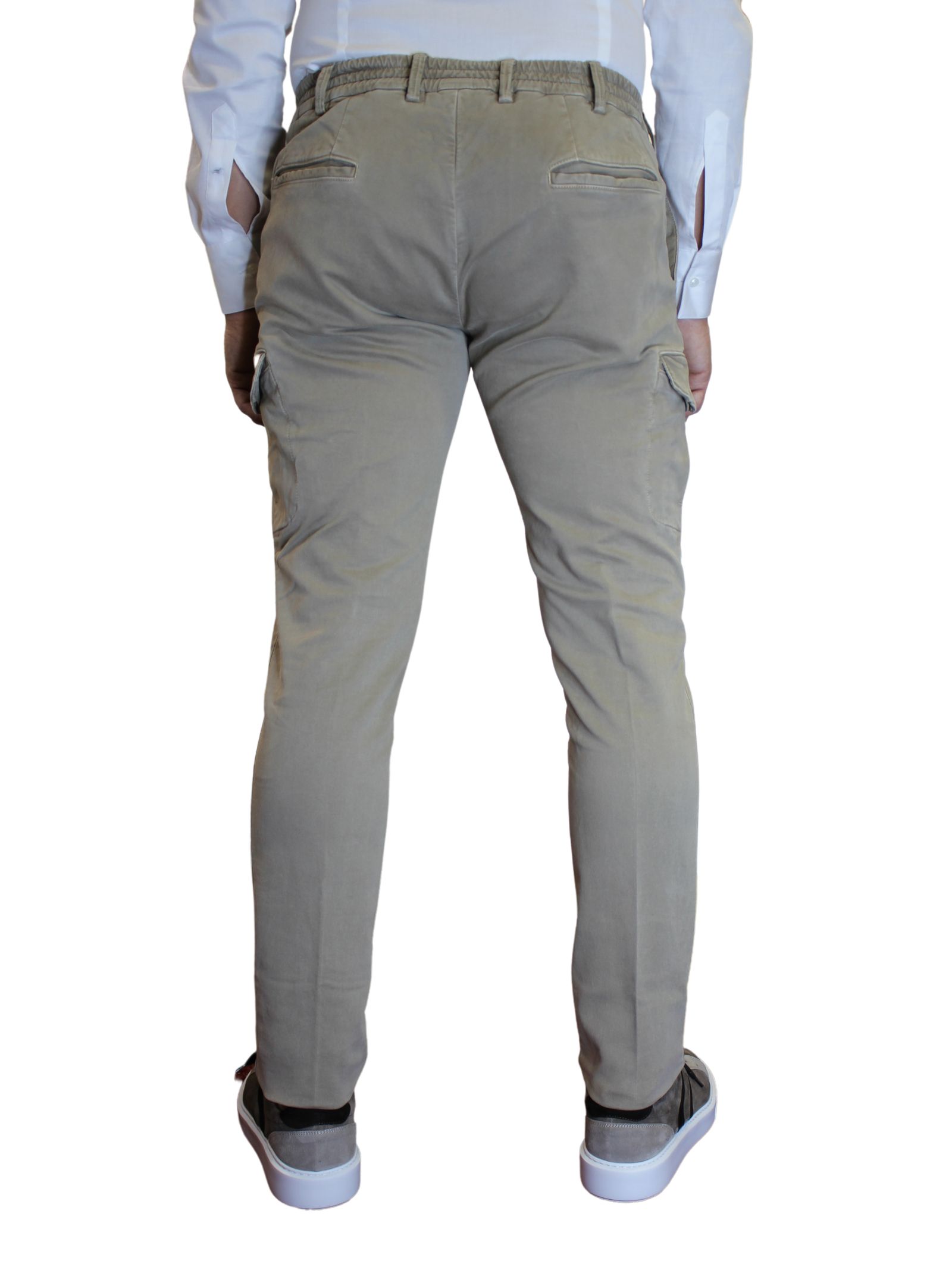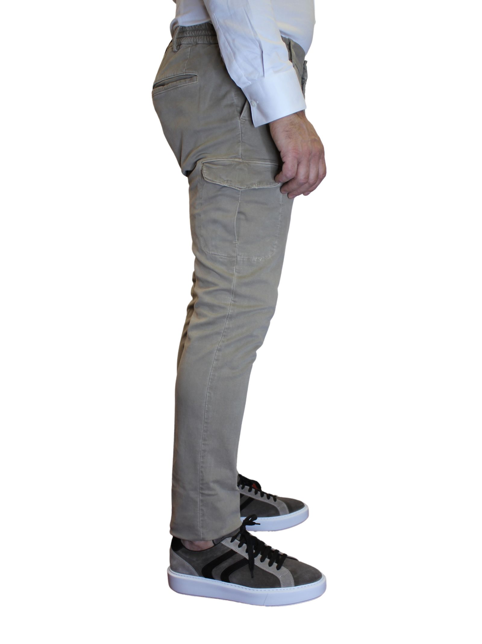 Pantalone uomo con tasconi. Tasche a filo e elastico in vita per il massimo comfort, questo pantalone offre praticità senza compromettere lo stile. I tasconi laterali aggiungono un tocco di modernità e versatilità.