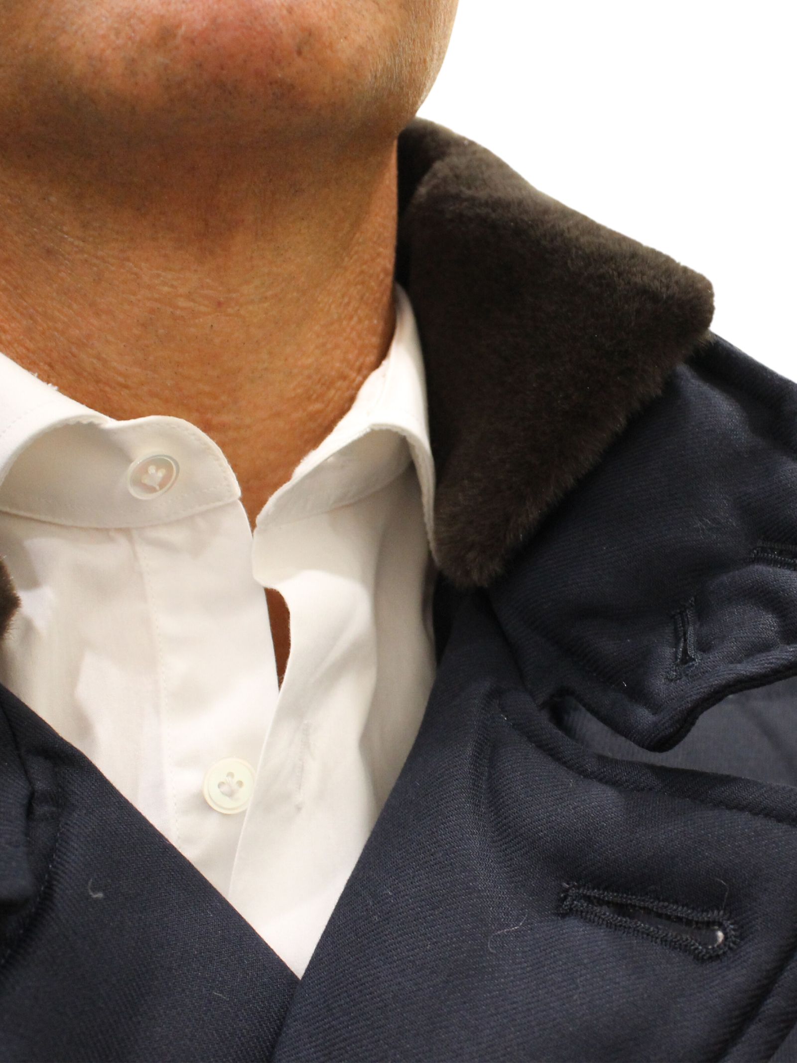 Piumino uomo doppiopetto trapuntato.Pelliccia removibile per un look personalizzabile. Chiusura doppio petto e trapuntatura orizzontale. Massimo comfort con un tocco di eleganza.