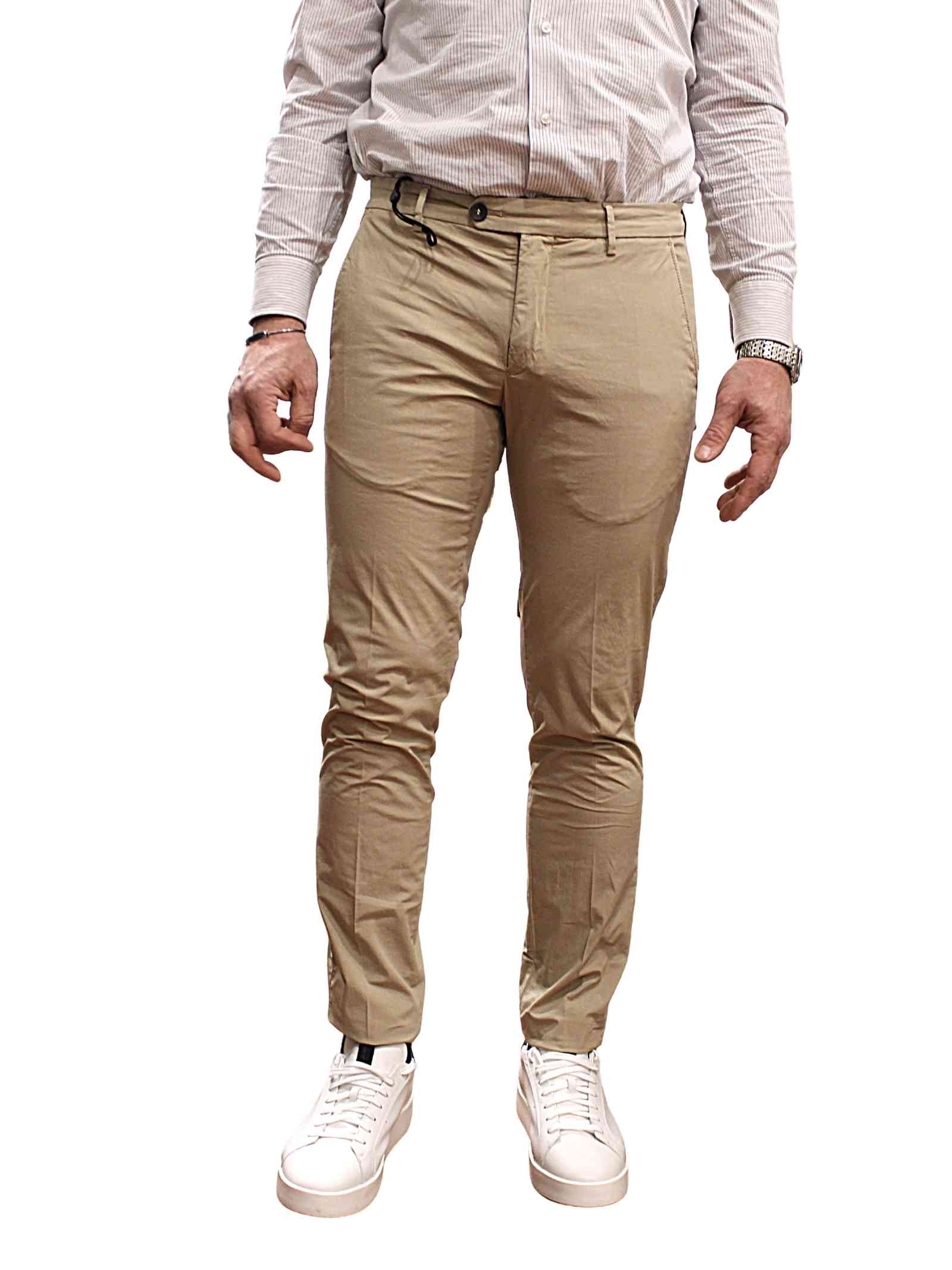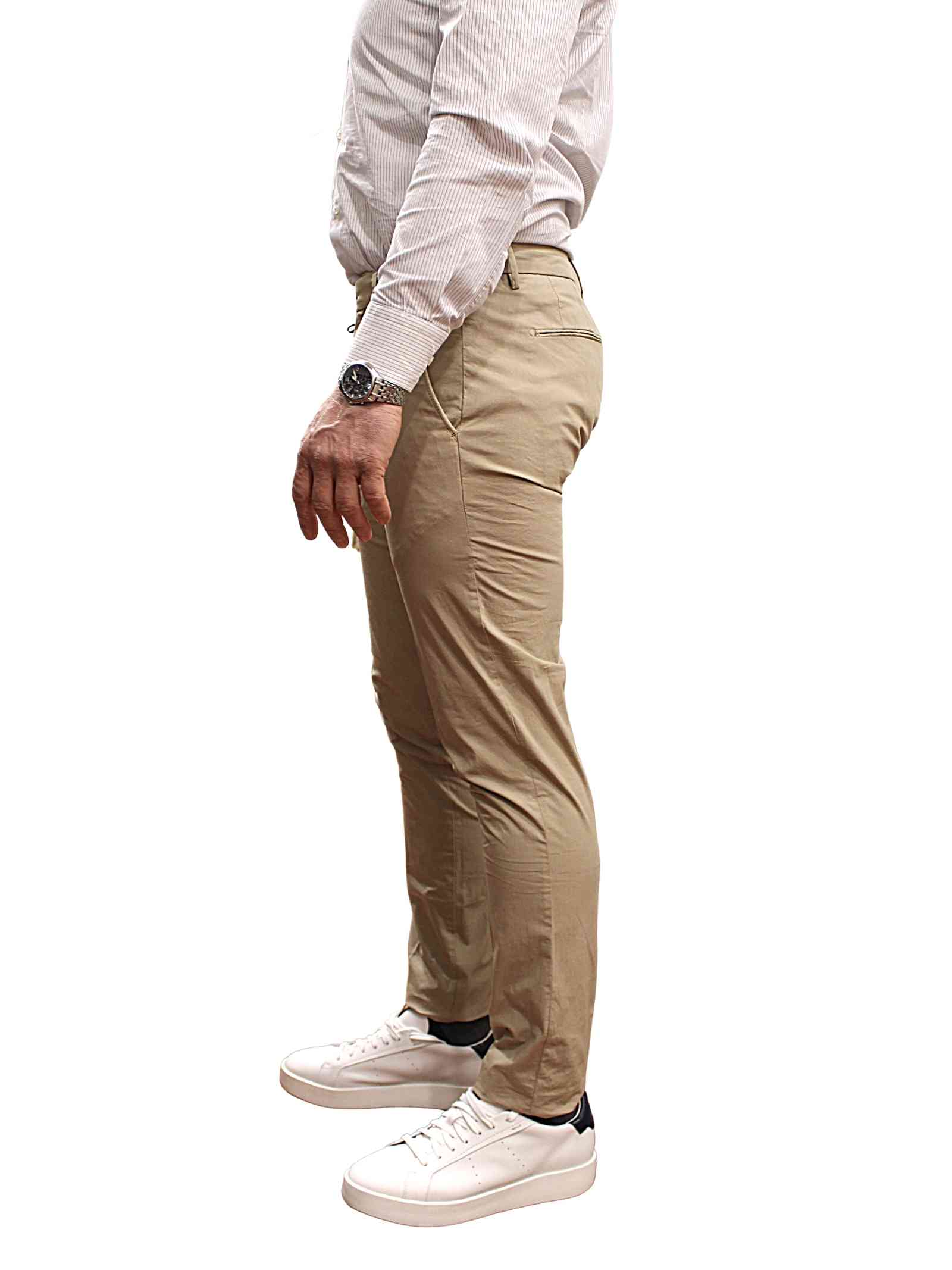 Pantalone cotone linea “Brad”, tasca America, colore beige.