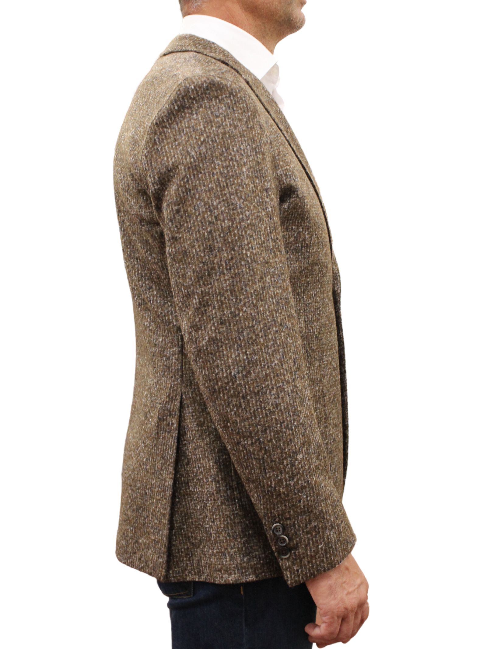 Giacca uomo sfoderata modello Dream realizzata in un mix di materiali di alta qualità: 46% acrilico, 34% poliestere e 20% lana vergine. Con tasche a toppa, taschino, spacchi laterali, chiusura a 2 bottoni e 3 bottoni alle maniche. Il colore melange conferisce un tocco di eleganza senza tempo.